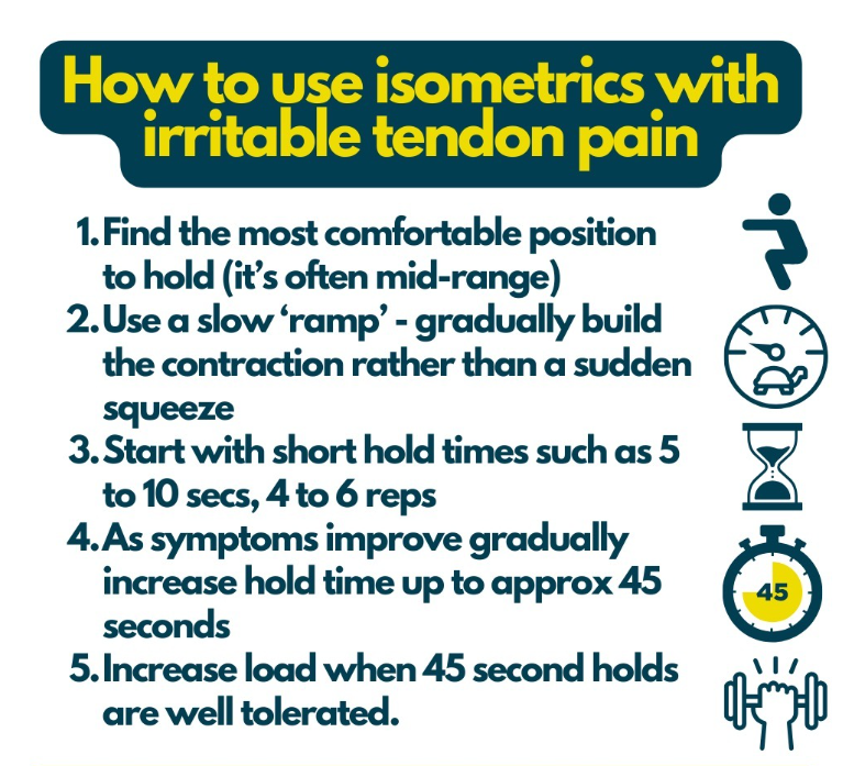 The next challenge is knowing how to address it. In essence the aim is to build resilience and capacity within the tendon to tolerate higher loads through range and with greater rates of force development. The challenge is often finding the appropriate starting point and increasing loading variables but taking account of the tendon response to the new stimulus.